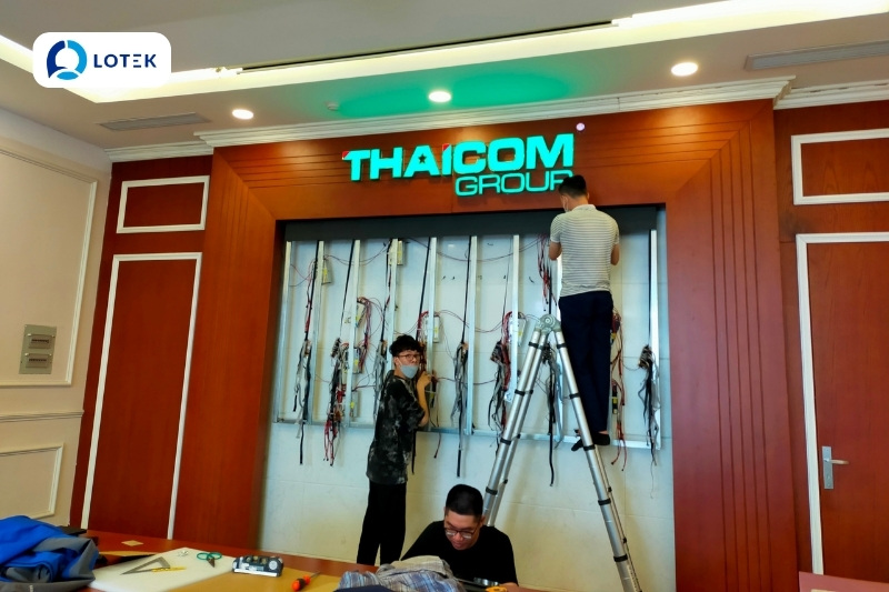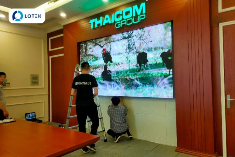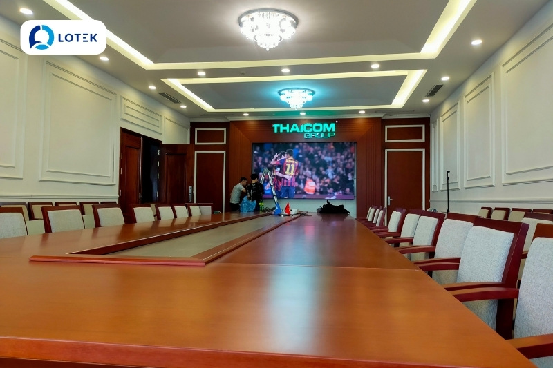 Nhằm nâng cấp không gian phòng họp, thay thế các thiết bị trình chiếu truyền thống, đồng thời đáp ứng tốt nhu cầu họp trực tuyến – đào tạo – thuyết trình – làm việc đa điểm cầu, THAICOM đã tin tưởng lựa chọn LOTEK là đơn vị tư vấn, thiết kế và thi công màn hình LED phòng họp.