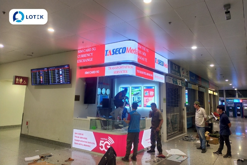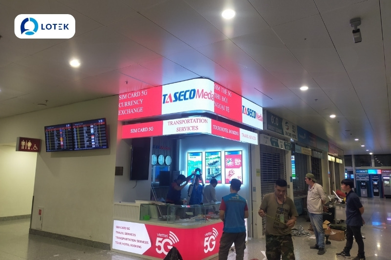 Trong chiến lược nâng cấp hệ thống kiosk dịch vụ và quảng bá thương hiệu tại nhà ga, Công ty Cổ phần Tập đoàn TASECO đã tin tưởng lựa chọn LOTEK LED là đơn vị tư vấn và thi công hệ thống màn hình LED P2 dẻo trong nhà cho các quầy dịch vụ (Service Kiosk).