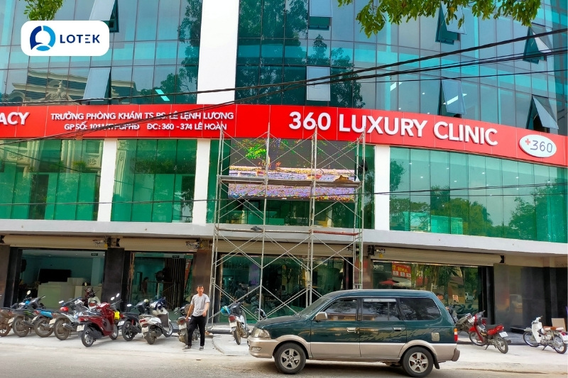 Xuất phát từ nhu cầu đó, Phòng khám Đa khoa 360 Lê Hoàn đã tin tưởng lựa chọn LED LOTEK là đơn vị tư vấn và thi công màn hình LED P4 ngoài trời lắp đặt tại mặt ngoài tòa nhà, ngay khu vực phòng khám hoạt động.