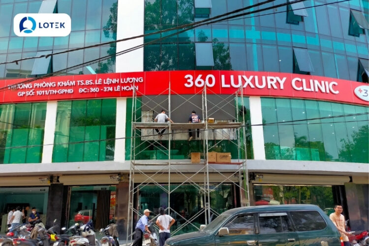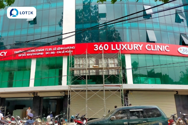 Phòng khám Đa khoa 360 Lê Hoàn là đơn vị hoạt động trong lĩnh vực chăm sóc sức khỏe, tọa lạc trong một tòa nhà lớn tại khu vực trung tâm thành phố Thanh Hóa. Do phòng khám đặt tại mặt bằng thuê bên trong tòa nhà, không phải công trình độc lập, nên việc xây dựng hệ thống biển hiệu nhận diện và quảng cáo bên ngoài đóng vai trò vô cùng quan trọng, giúp người đi đường dễ dàng nhận biết vị trí phòng khám cũng như các dịch vụ đang cung cấp.